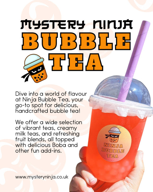 Dive into a world of flavor at Ninja Bubble Tea, your go-to spot for delicious, handcrafted bubble tea! Now located in our store in Liskeard, Cornwall. We offer a wide selection of vibrant teas, creamy milk teas, and refreshing fruit blends, all topped with delicious Boba and other fun add-ins.