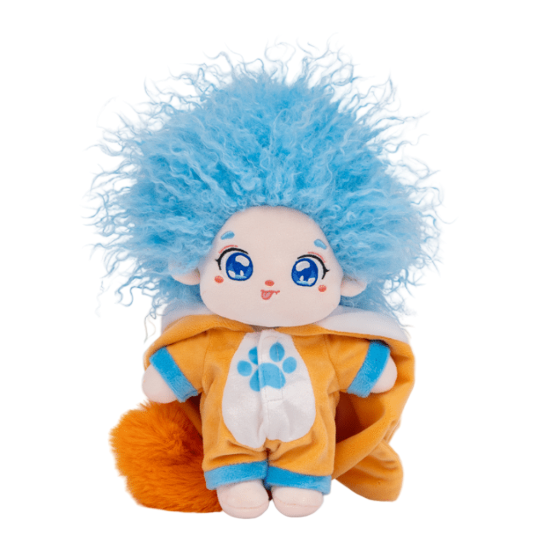 The removable Shiba-themed outfit includes a hood with a detailed embroidered Shiba face, soft ears, and a plush tail. Remove the hood and give the doll a gentle shake to reveal the signature BedHedz tousled hair, perfectly embodying that effortless, just-woke-up vibe.