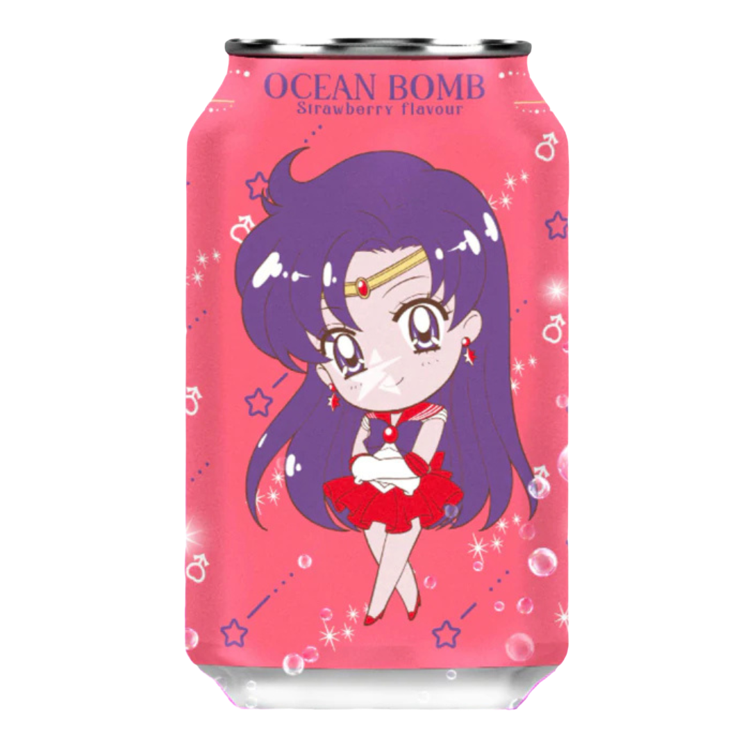 Ocean Bomb & Sailor Moon Collaboration Strawberry Flavour Sparkling Water 330ml is a delightful beverage that combines the refreshing qualities of sparkling water with the sweet and juicy taste of strawberries.